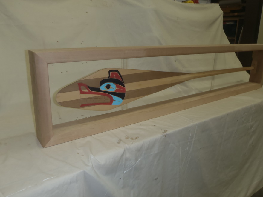 A local carver from the Snuneymuxw First Nation in Nanaimo approached me to create a complementary frame for the paddles he carved. After our discussion, it was decided that clear cedar would accent his work in the best way. One of the paddles is destined for his home and the other will hang on the wall of a new bank in Nanaimo.